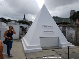 As I searched for locations in New Orleans, I discovered the Nicolas Cage tomb. I frowned. Was he dead? Nope. Yet he has a tomb at the St Louis Cemetery No. 1, a unique burial site where bodies are not kept underground, but above ground. It’s a true city of the dead. There are said to be over 70,000 corpse there, sharing graves. Nic was one of my childhood heroes, so I decided to see it. Surprisingly, there is an entry fee to the cemetery. Twenty dollars per person, for a forty five minute visit. I think they get so many visitors that they decided to make some money. They claim its to prevent vandalism, but did they have to charge that much? They took only cash and did not give us receipts, so probably the guides pocket all the money. We were about seven people in the tour, and yet after it the guide still asked us for tips! (I’m going to rant about their obsession with tips in the next post.)