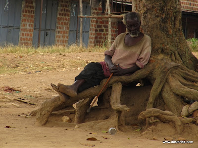 A grandfather passes the time in Nakapinyi, Mukono district.